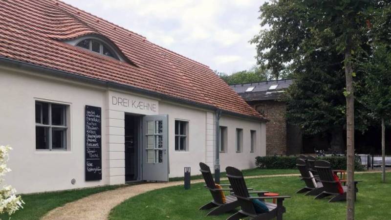 Im Café Drei Kaehne am Schlossgarten Petzow werden Kaffee und Kuchen sowie kleine Mahlzeiten wie beispielsweise Sandwiches oder Bagels angeboten.