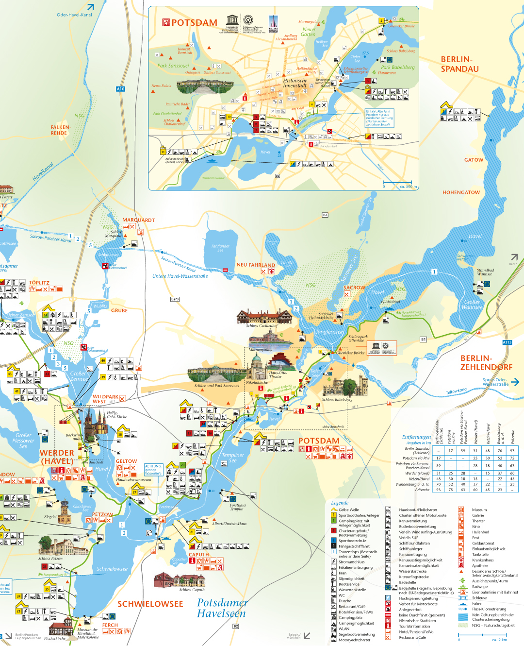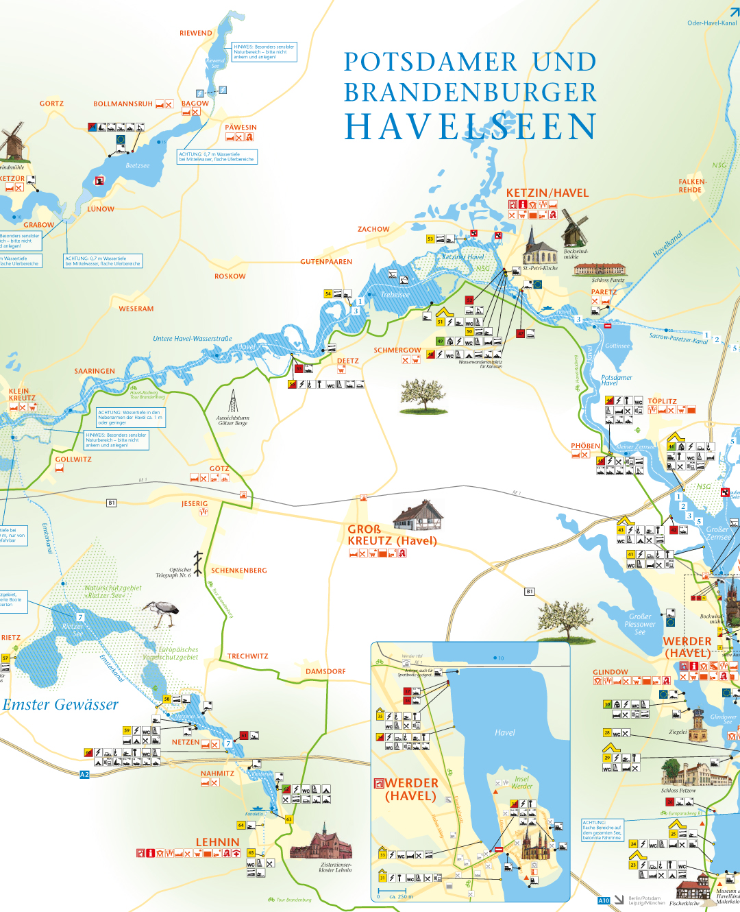 Gerade in der Saison gibt es in Werder zahlreiche Veranstaltungen. Auch viele Stadtführungen werden angeboten, gerade Themenführungen werden dabei immer beliebter. Häfen und Marinas, halten Liegeplätze für alle Bootsgrößen bereit. Restaurants und Cafés am Wasser oder in der Altstadt sind für eine kleine Stärkung schnell zu erreichen.